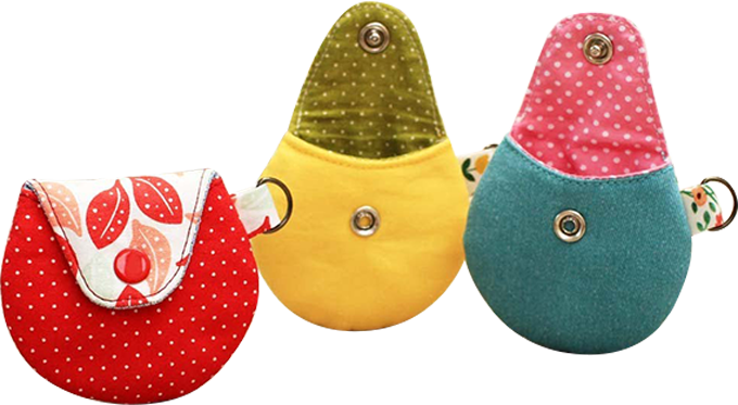 This template design will create a lovely, adorable, and very functional “Round Coin Pouch” that is good for keeping your little things together; keys, make-up, coins, cards, and more! Use it to store smaller items in your purse, car, or anywhere you need while on the go.