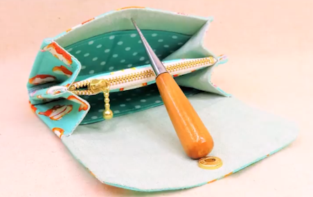 -Sew four pieces of fabric and the zipper together, then turn them over to close the edges. You can get a wallet.