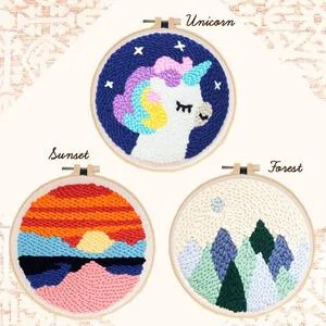 The trend in embroidery: Punch needle Our Punch Needle DIY Embroidery Setprovides embroidery needle, floss, drafted pattern, scissor, pin and copper thread. Pick the kit and get anything ready to start DIY punch needle easily from zero.