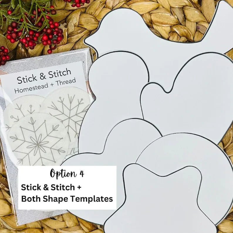 🔹 Option 4 - Snowflakes & Shapes: 12 snowflake patterns + two sets of felt decoration templates, six card shapes (❤️, ⚪, ⭐, 🕊️, 🧤, ⛄) already cut, enrich your choices!