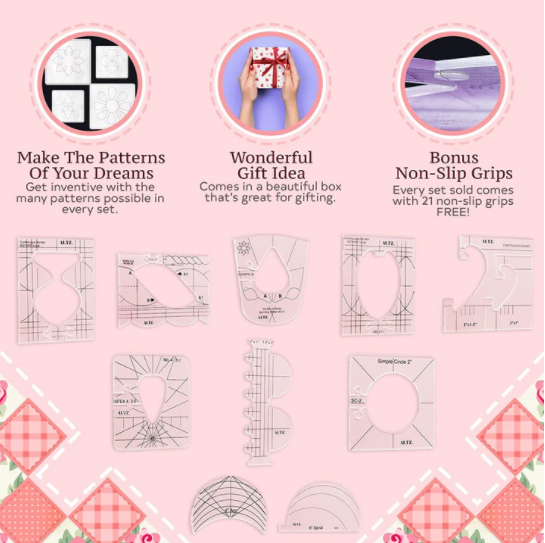 Our creative quilting ruler templates include a variety of shapes that helps you produce a beautiful quit among other projects with your imagination and creativity.