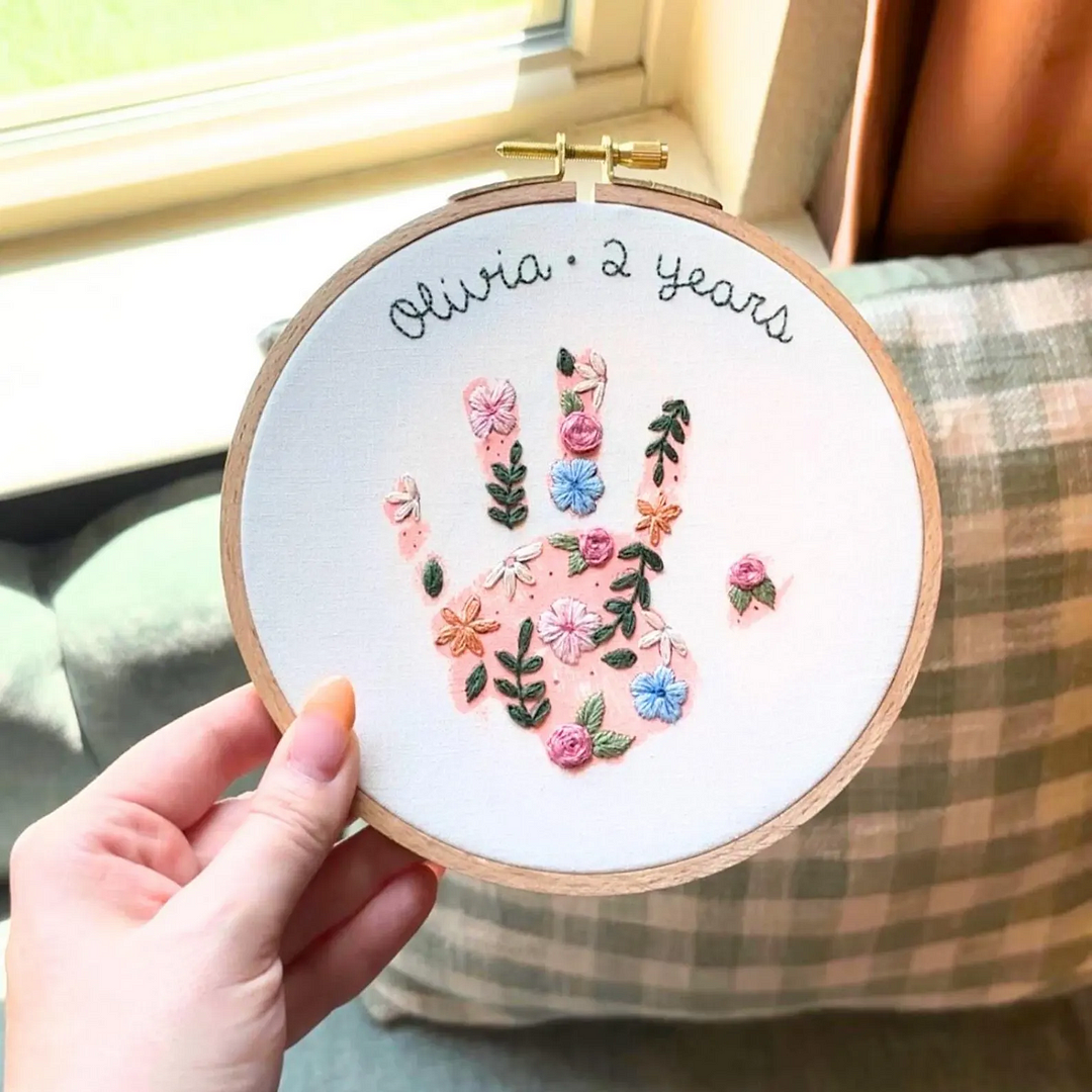 🌸👩👧What could be a warmer gift than sewing a floral embroidery souvenir with a "handprint" for your mom or grandma?