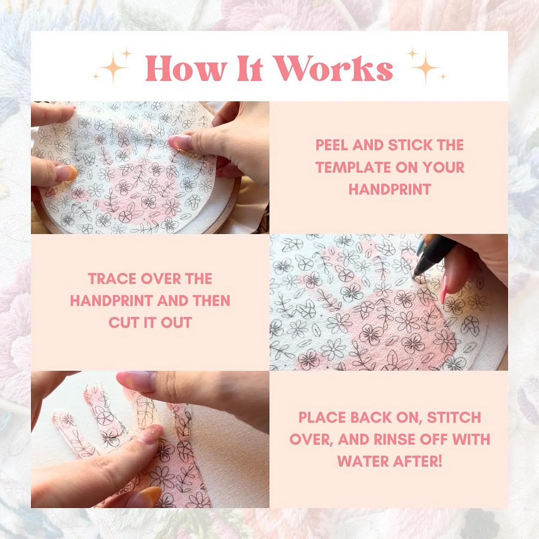 - Wash and dissolve: After completion, rinse gently with warm water, the pattern will dissolve, leaving a perfect embroidery work💧